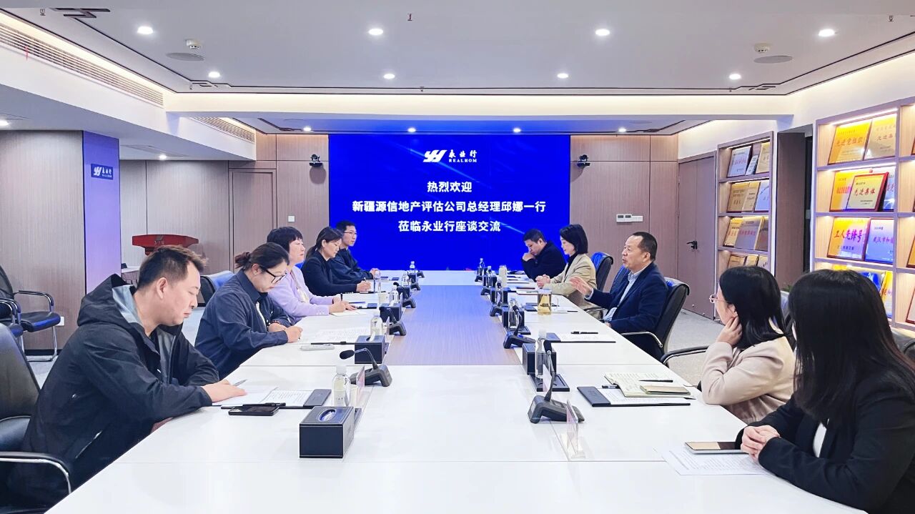 2025年10月20日,新疆源信地产评估事务有限责任公司(以下简称“新疆源信”)总经理邱娜一行莅临永业行学习交流。中国土地估价师与土地登记代理人协会副会长、永业行董事长潘世炳,永业行联席总裁王琴,技术副总监、技术中心总经理李冀云等热情接待并参加座谈交流。